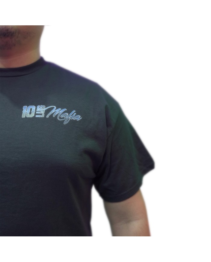 Small logo on left side front of shirt